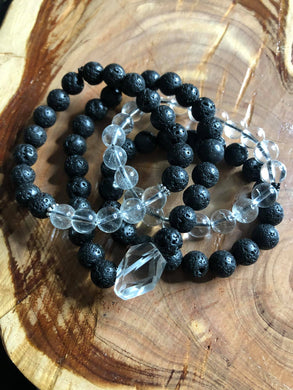 Lava Stone Bracelet set with Clear Crystal Quartz